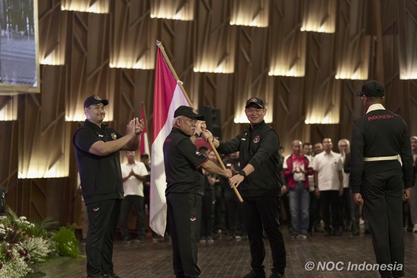 Upacara pengukuhan dipimpin Menteri Pemuda dan Olahraga (Menpora), Dito Ariotedjo dan Wakil Menteri Pariwisata dan Ekonomi Kreatif Angela Tanoesudibjo. Hadir pula Wakil Ketua NOC Indonesia Ismail Ning serta Komite Eksekutif NOC Jadi Rajagukguk yang juga merupakan Wakil CdM Tim Indonesia.