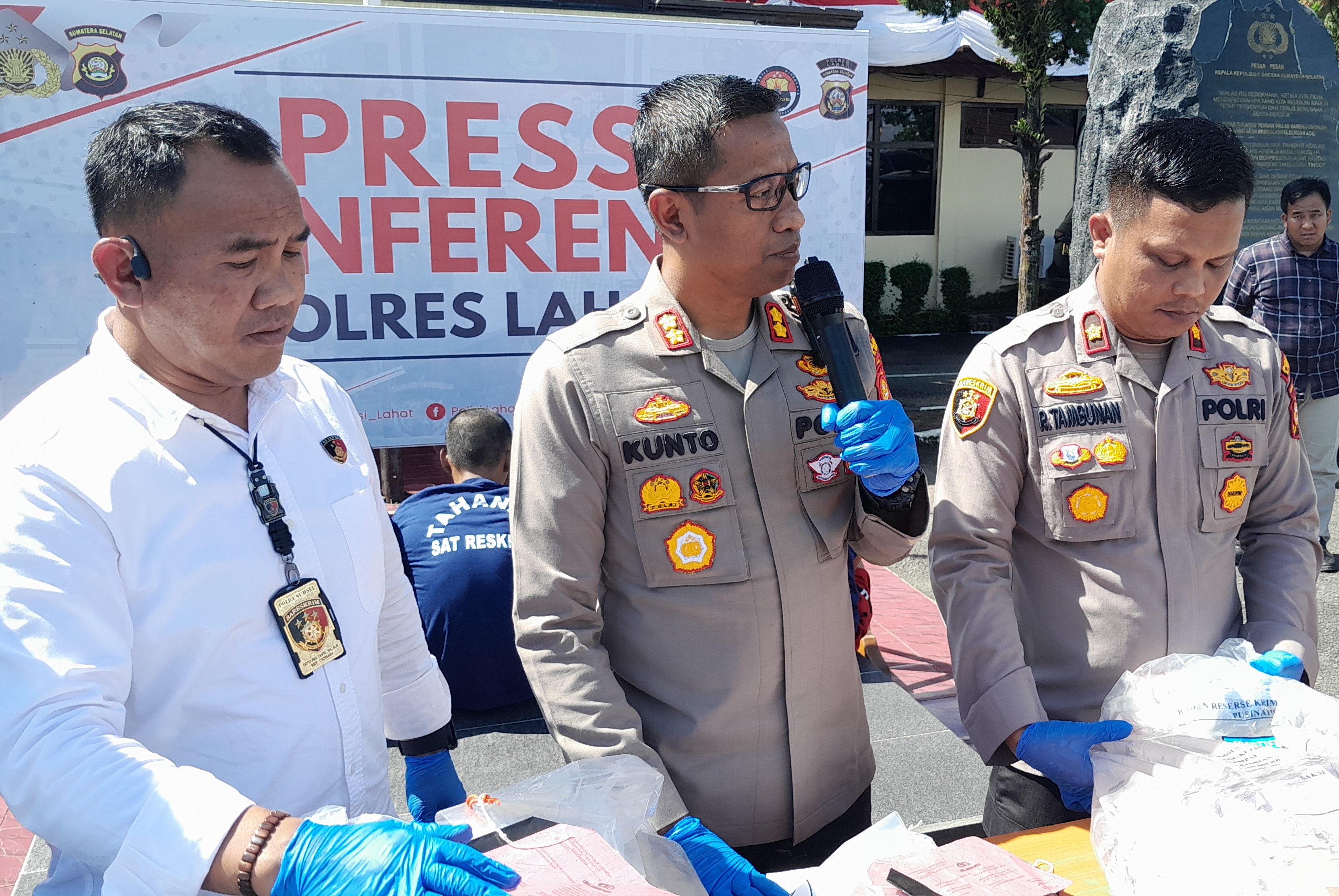 RILIS : Kapolres Lahat bersama Wakapolres dan Kasat Reskrim Reskrim Polres Lahat saat rilis ungkap kasus beberapa waktu lalu (foto tak ada kaitan dengan berita)--
