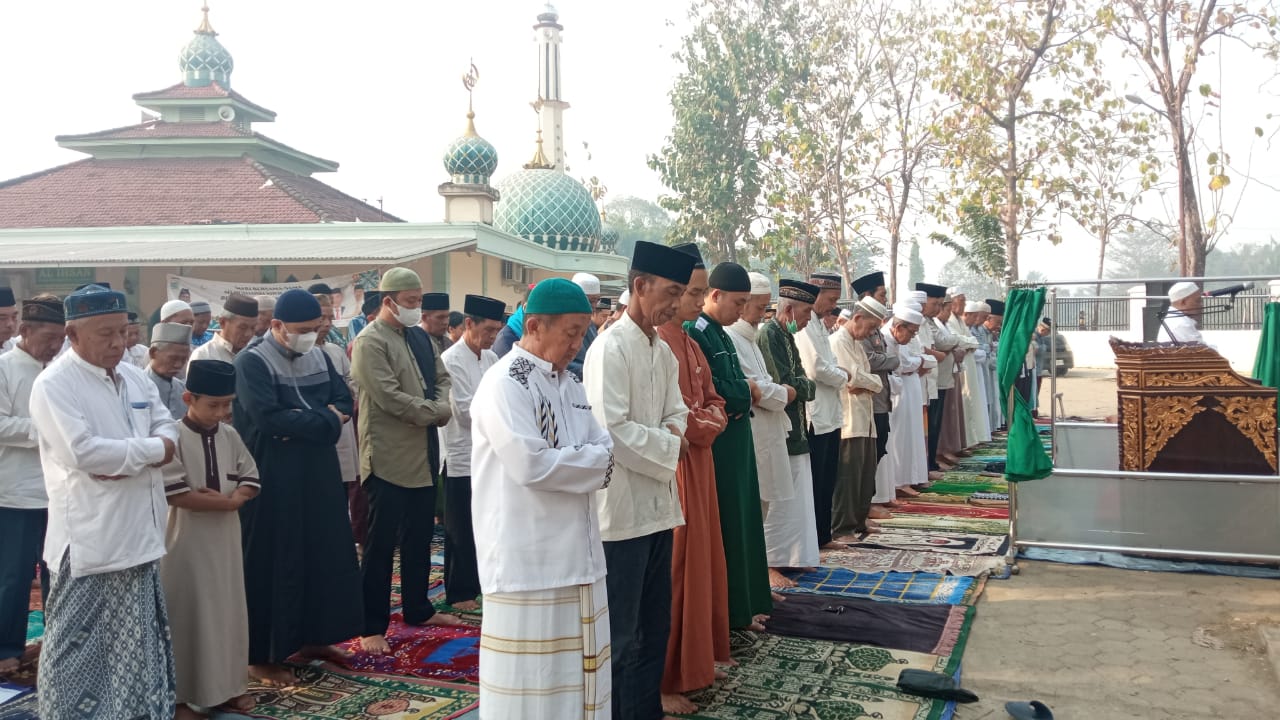 Khotib, DR. K.H. Faisal Abdullah, M.PDI, mengajak seluruh jamaah untuk bersatu dalam doa dan tawakal kepada Allah SWT.