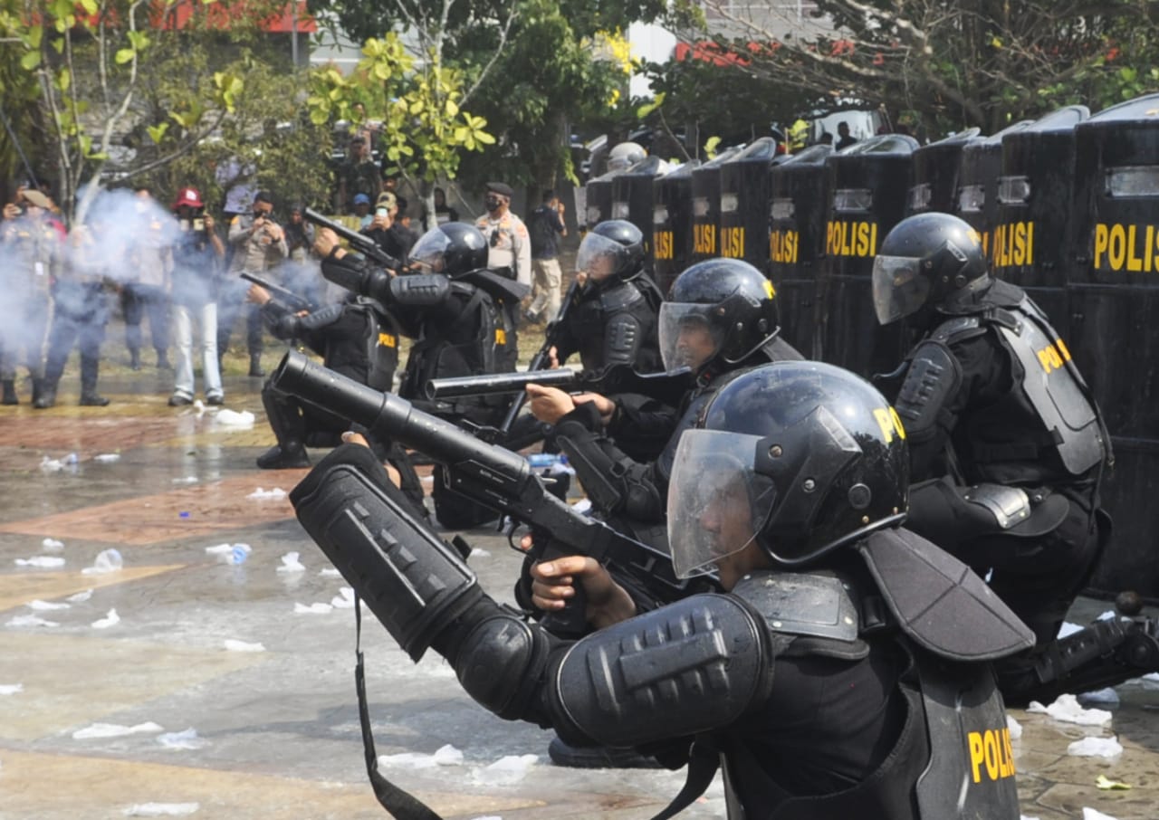 Aparat kepolisian terpaksa menembak agas air mata ke arah demontrans yang bertindak anarkis--