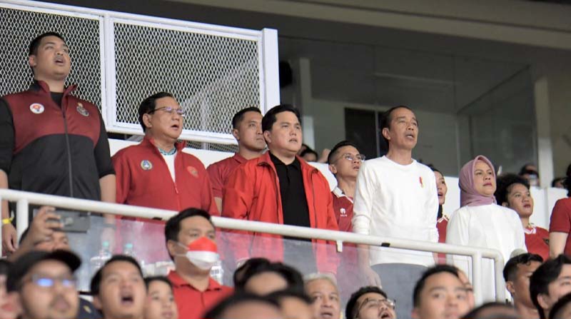 Menpora Dito Ariotedjo saat mendampingi Presiden Joko Widodo menonton pertandingan Timnas Indonesia di SUGBK Senayan, Jakarta.-Kemenpora-