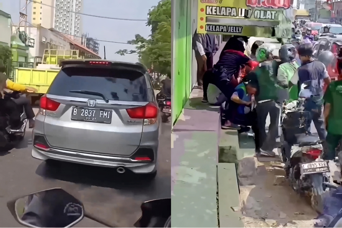 Dalam video tersebut terlihat sejumlah pengendara motor berusaha mengejar mobil pelaku.