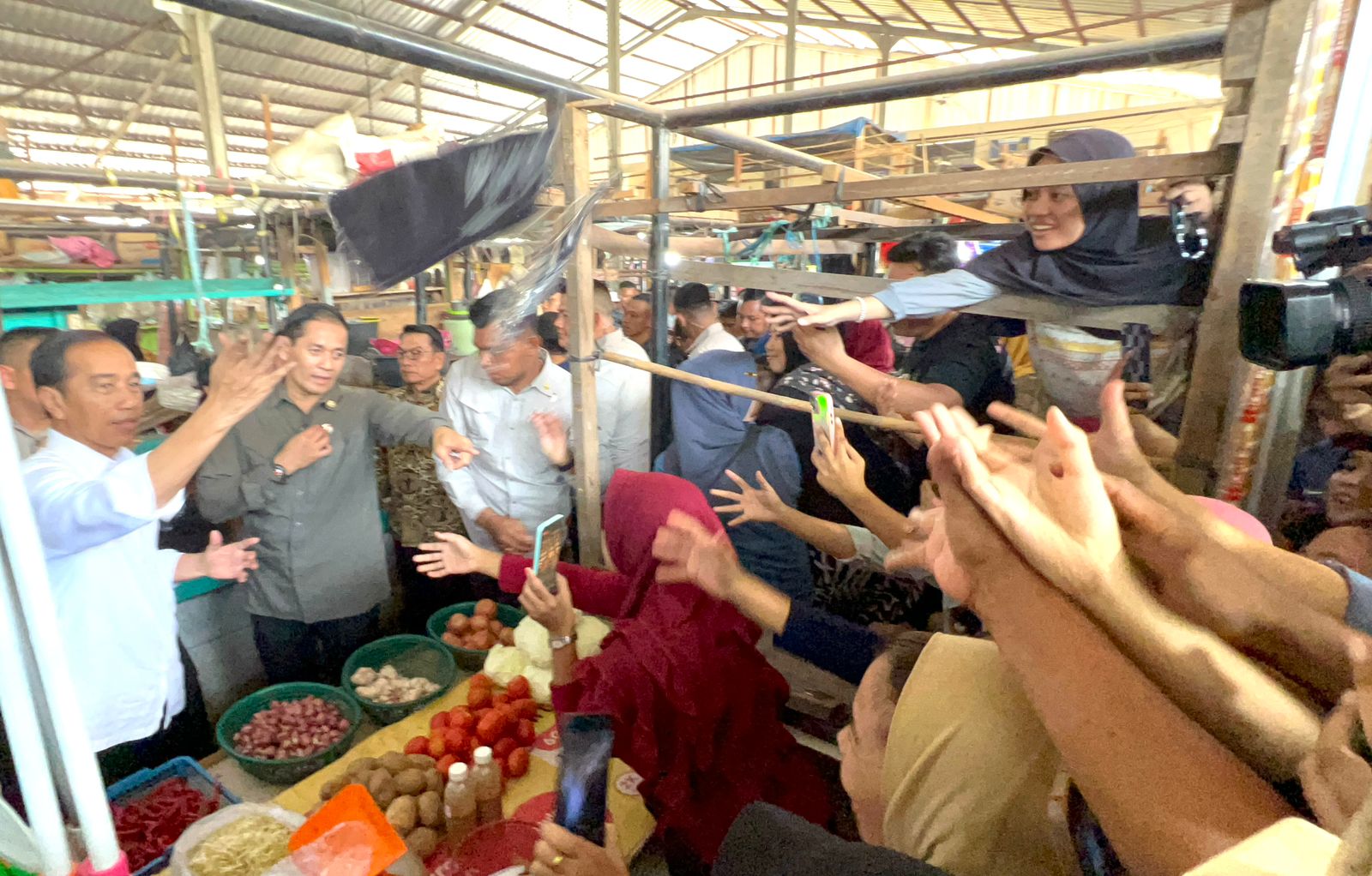 Cek Harga Sembako Palembang, Jokowi Blusukan Pasar Sekip! Pedagang Antusias dan Rela Berhimpitan