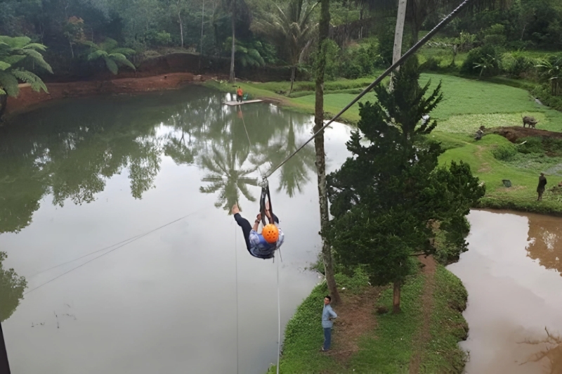 jika kamu ingin lebih menantang, bisa mencoba wahana flying fox yang melintasi perkebunan teh.