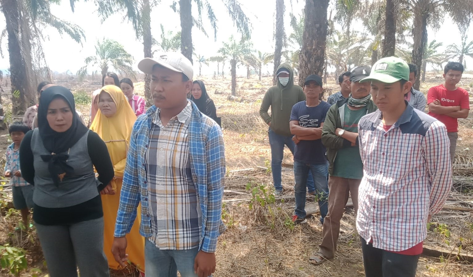 Setidaknya menurut warga, saat ini sebanyak 139 batang sawit iduga telah dirobohkan dengan alat berat milik perusahaan tanpa izin dan koordinasi dengan Pemerintah Desa.