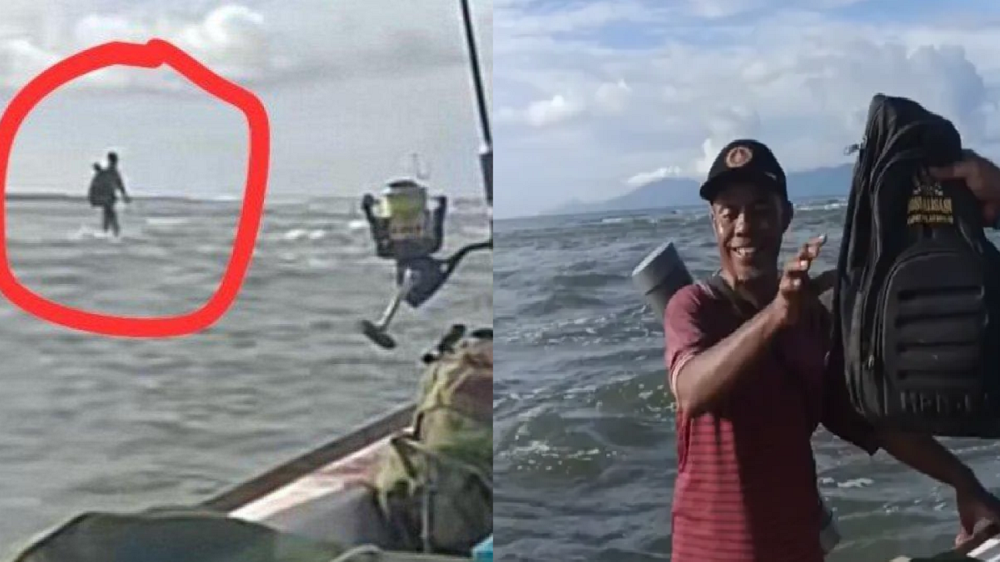 Dalam rekaman tersebut, kita bisa melihat pria tersebut berjalan di tengah-tengah air laut yang hanya mencapai tingkat lututnya.