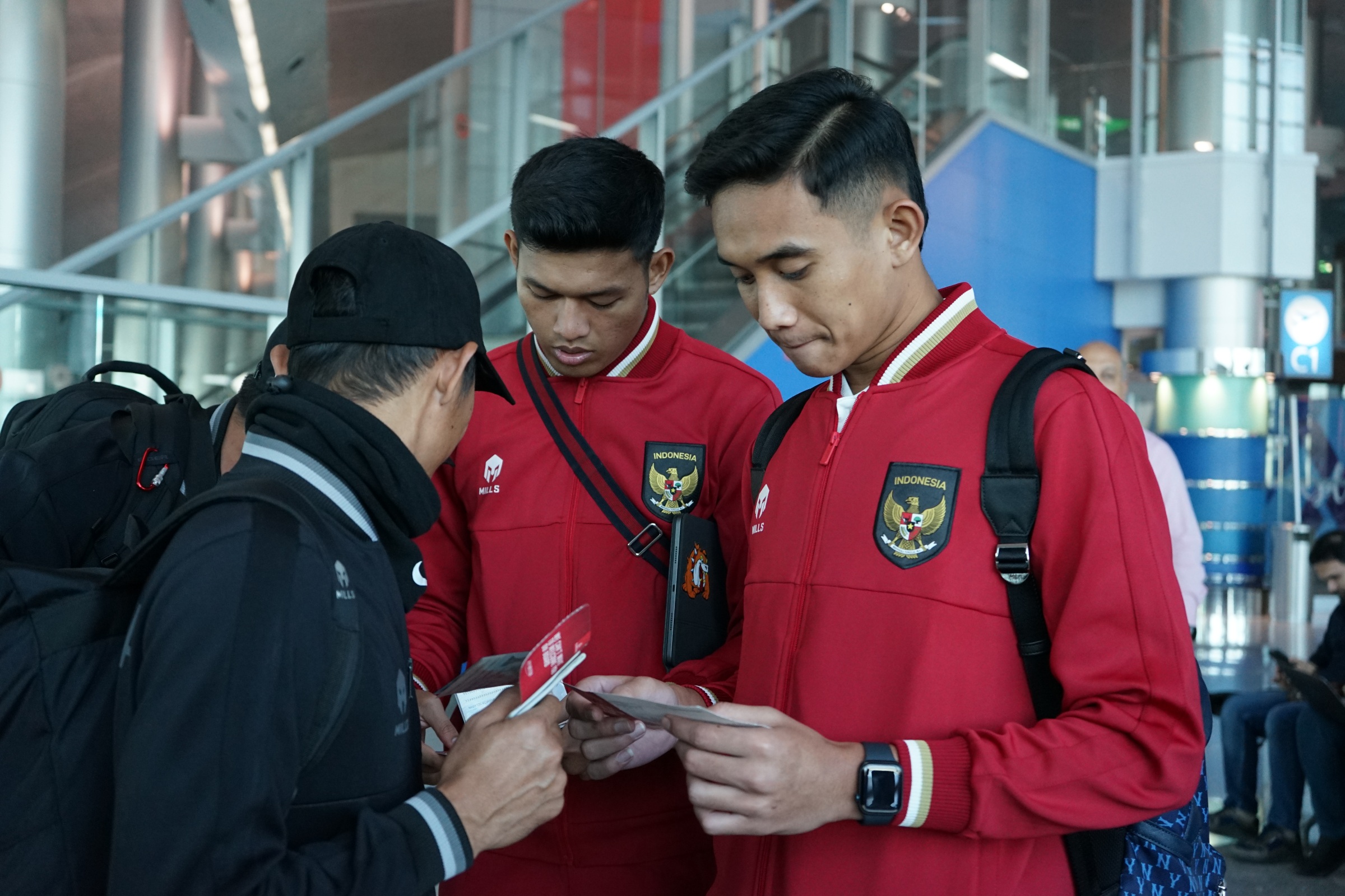 Rizky Ridho saat mengecek tiket di bandara bersama rekan setim di Timnas Indonesia.-PSSI-