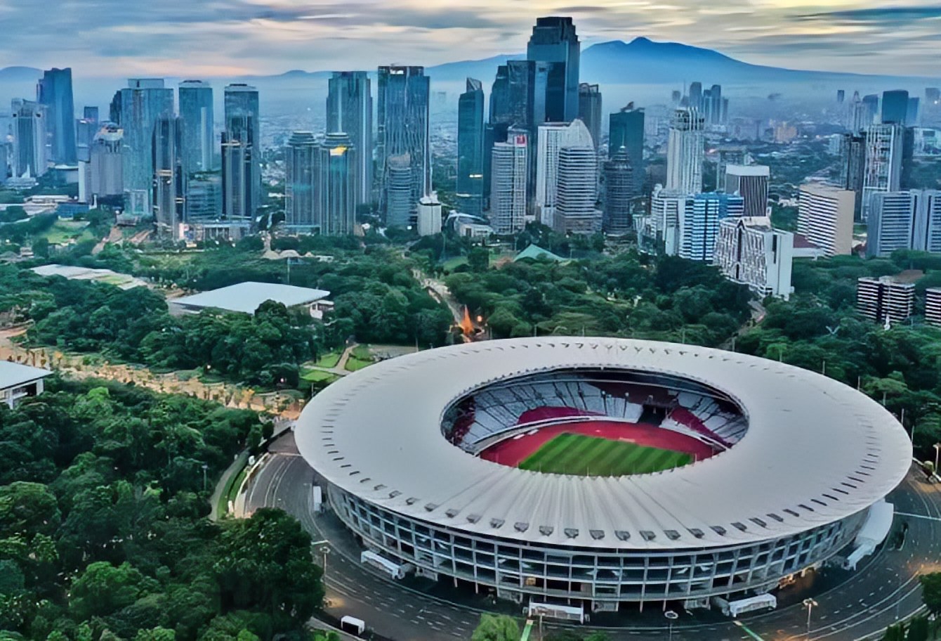 Pemandangan GBK dengan bangunan di sekitarnya--