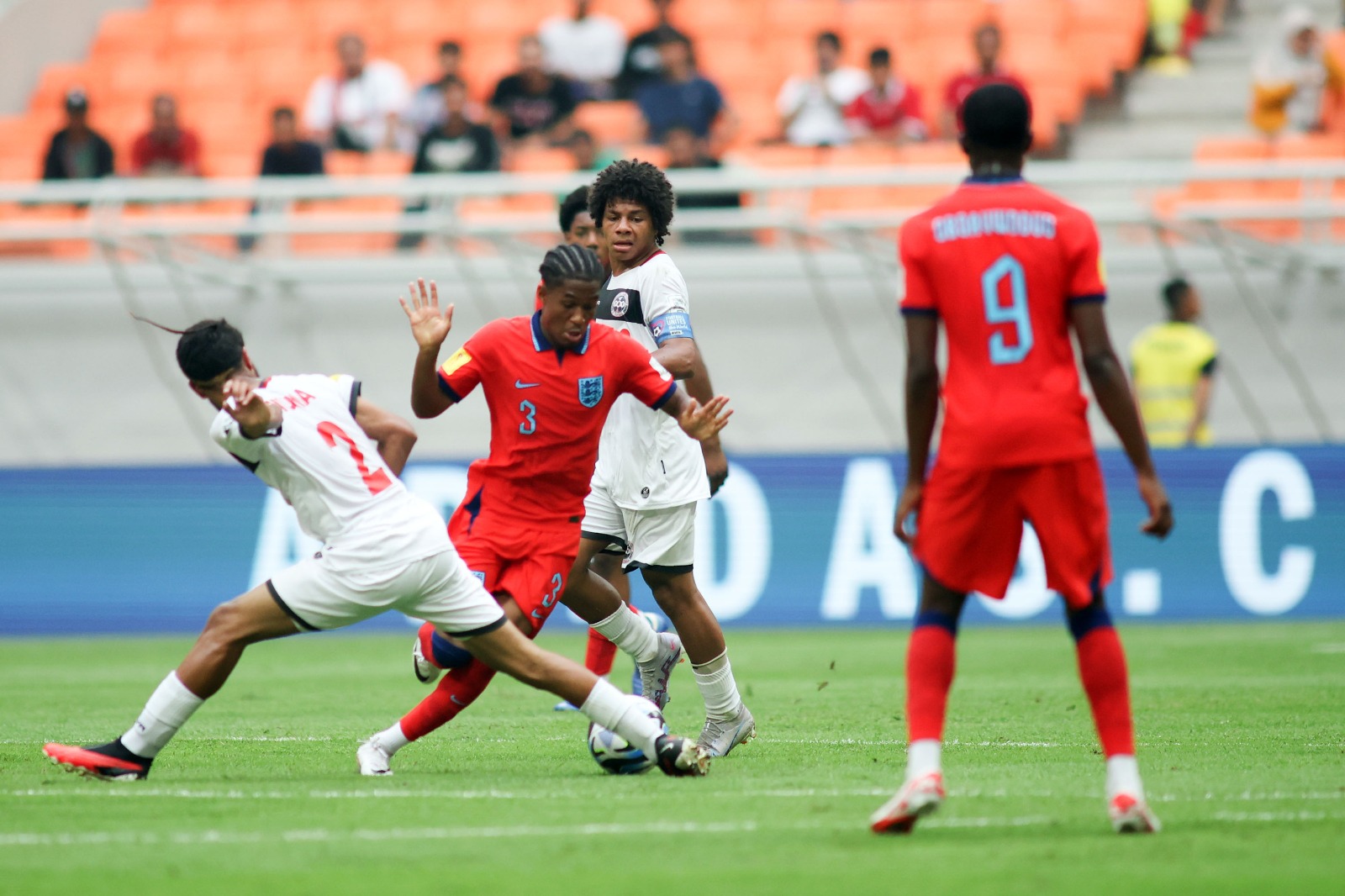 pemain timnas inggris berusaha lewati hadangan pemain kaledonia baru u-17.-loc wcu17-