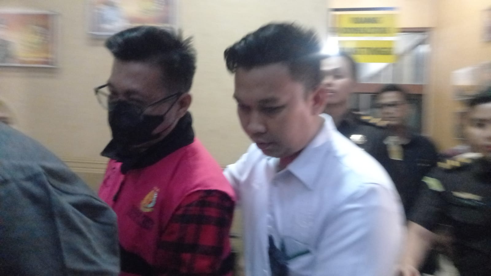 TAHAN : Direktur Perusda SPME Novriansyah Reagen saat digiring petugas Kejari menuju tahanan. (foto ist)--