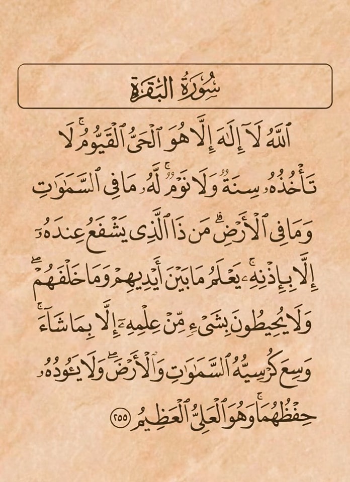Bahkan ayat kursi sering dijadikan hiasan atau pajangan di dalam rumah dan tempat-tempat lainnya.
