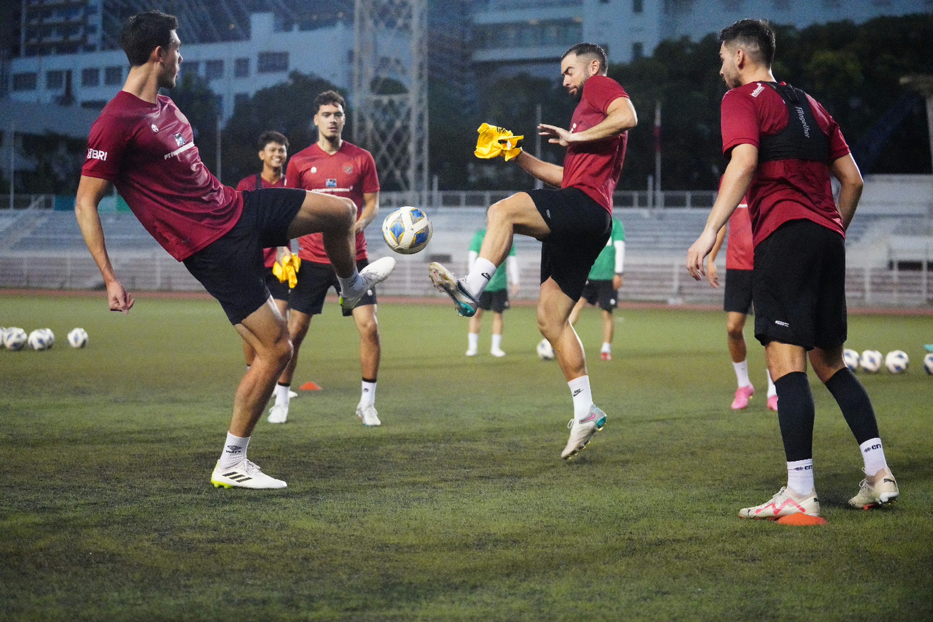 elkan bagott saat berlatih bersama pemain lainnya di manila. -pssi-