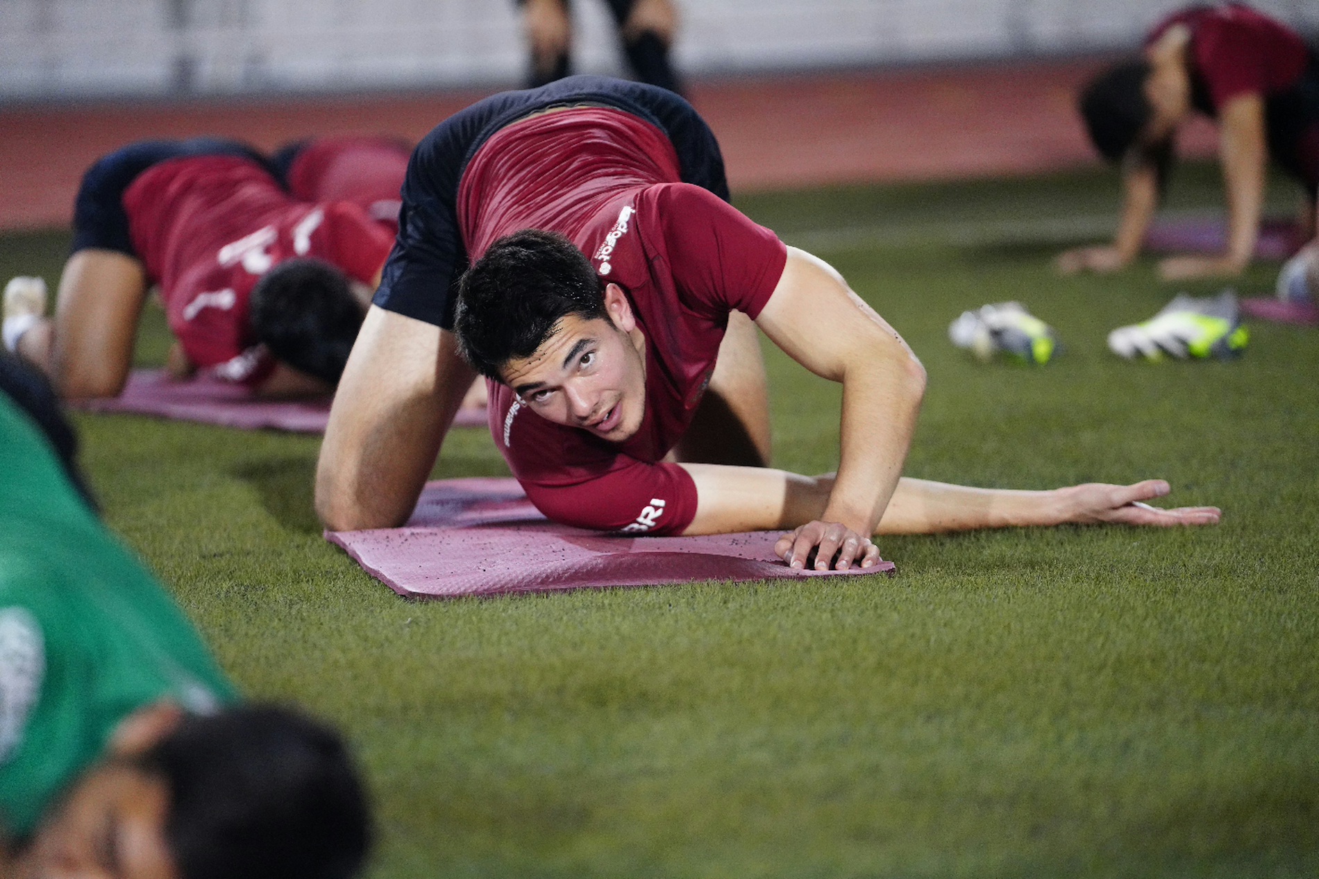 "seperti apa yang dilihat, rumputnya (stadion rizal memorial) bukan asli, tetapi sintetis. jadi kita fokus latihan pemulihan dan sekaligus latihan biar pemain cepat adaptasi dengan rumput sintetis," terang sty.