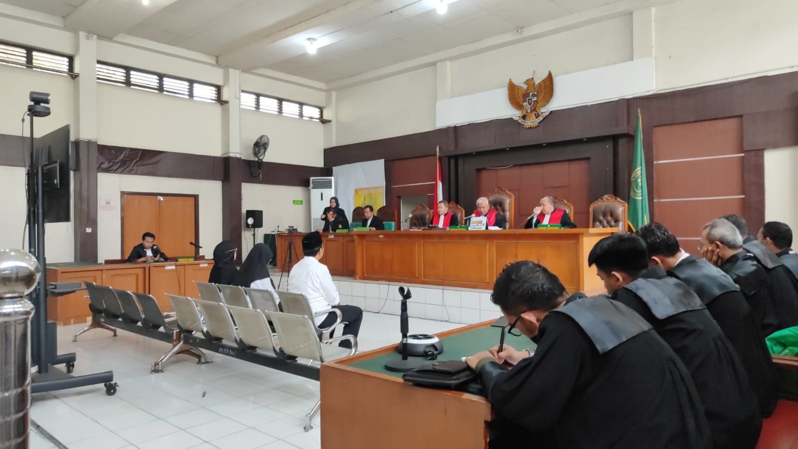 setelah mendengarkan putusan yang dijatukan majelis hakim yang diketuai hakim sahlan effendi sh mh, ketiga terdakwa dan jpu sama-sama nyatakan pikir-pikir.