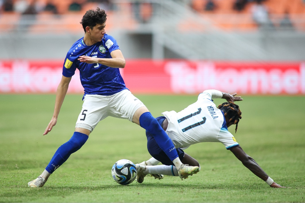Pemain Uzbekistan U-17 saat berebut bola dengan pemain Inggris U-17.-loc wcu17-
