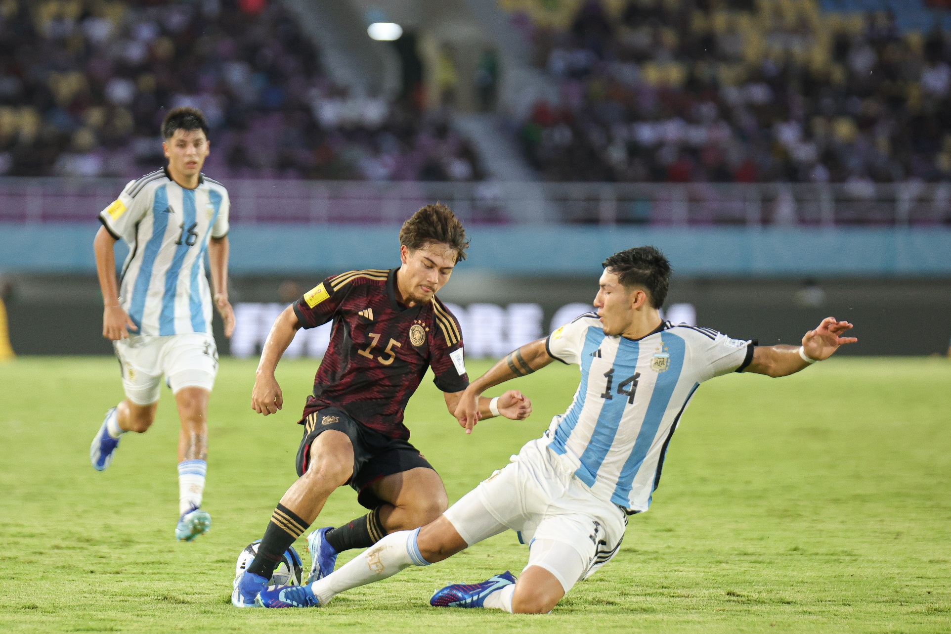 Jerman U-7 saat berduel dengan Argentina U-17 di semifinal.-loc wcu17-