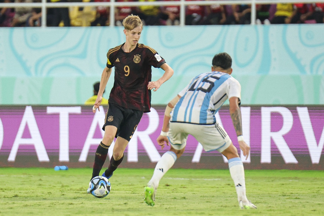 Max Moerstedt bersiap lewati hadangan pemain Argentina U-17.-loc wcu17-