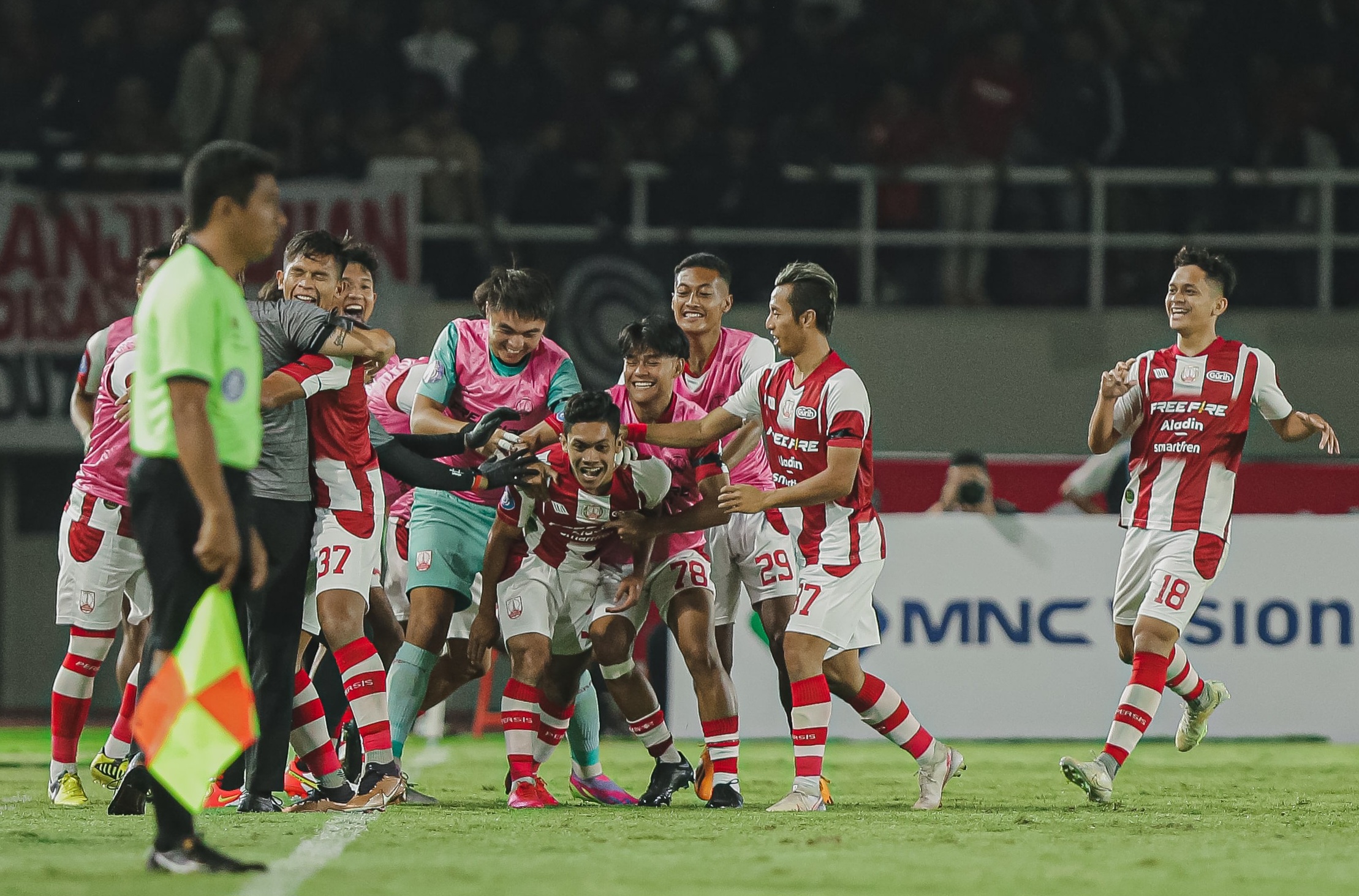 pemain persis saat merayakan gol ke gawang lawan.-persis-