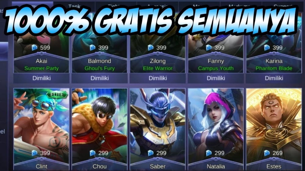 Kamu bisa dapetin Skin hero gratis tanpa perlu top up.