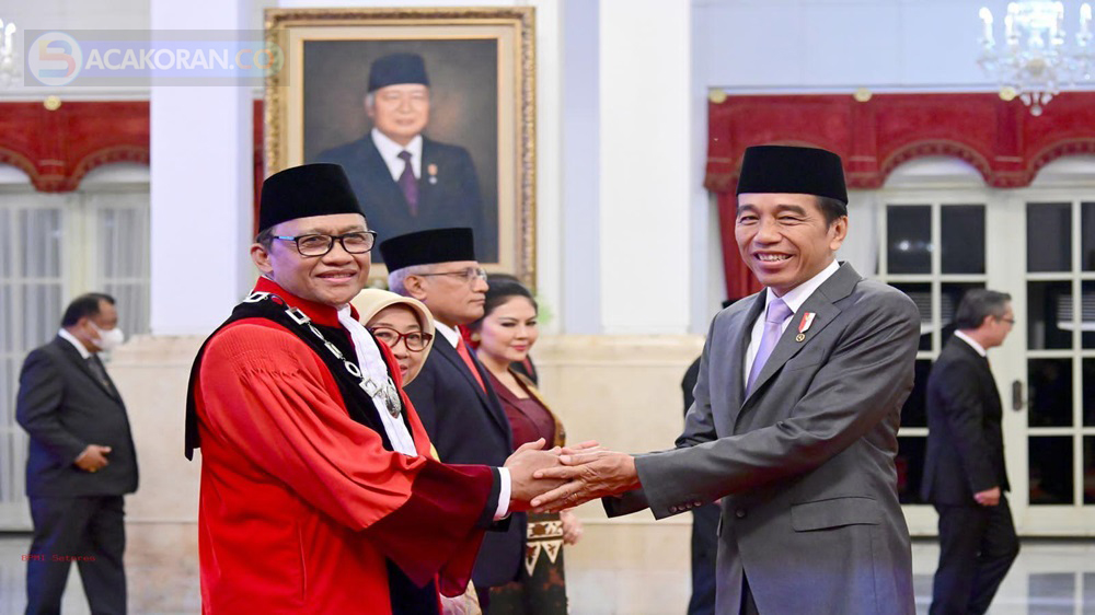 BACAKORAN.CO - Presiden Joko Widodo (Jokowi) melantik Ridwan Mansyur sebagai hakim Mahkamah Konstitusi (MK) menggantikan Manahan Sitompul di Istana Negara Jakarta, Jumat, 8 Desember 2023 pukul 10.45 WIB.