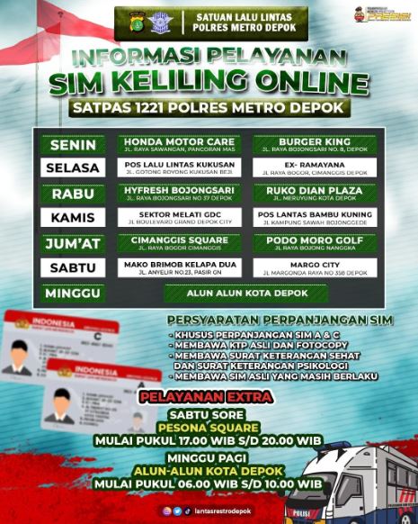 BACAKORAN.CO - Halo, Warga Depok jika surat izin mengemudi (SIM) akan habis masanya kamu bisa memanfaatkan Layanan SIM Keliling lho.