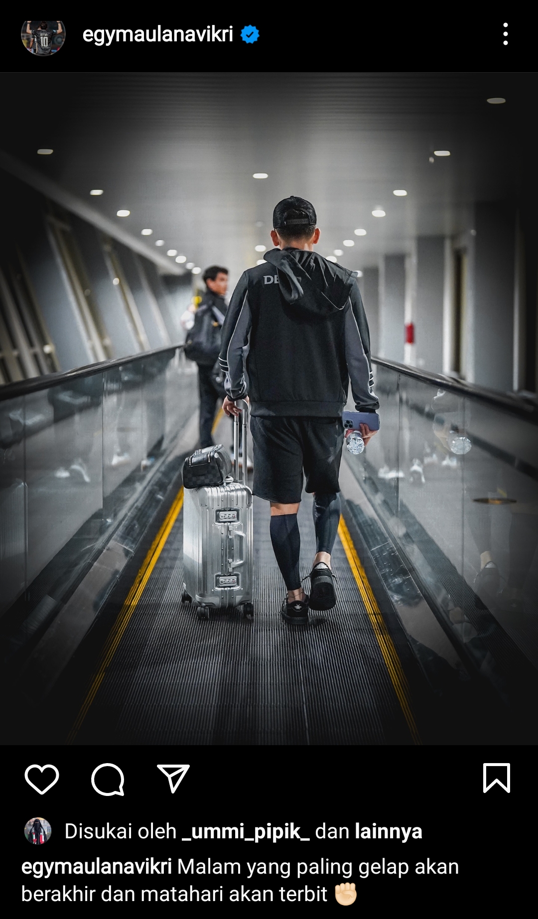 ia menuliskan caption yang menyentuh hati. "malam paling gelap akan berakhir. dan matahari akan terbit lagi" tulis caption instagram @egymaulanavikri