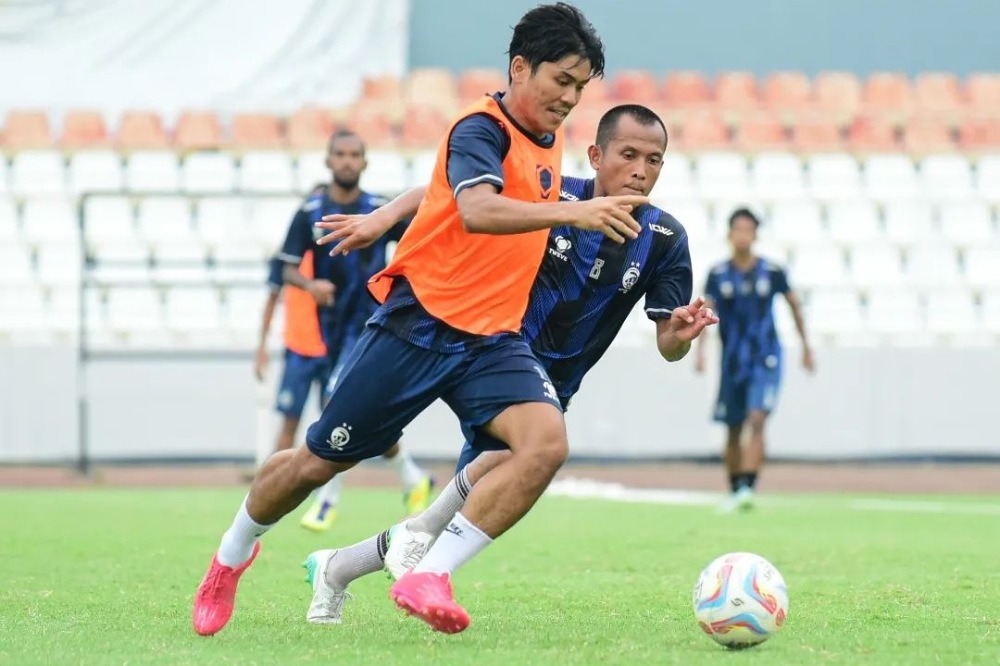 Pemain Sriwijaya FC saat berlatih hadapi pertandingan Liga 2 2023/2024.-lib-