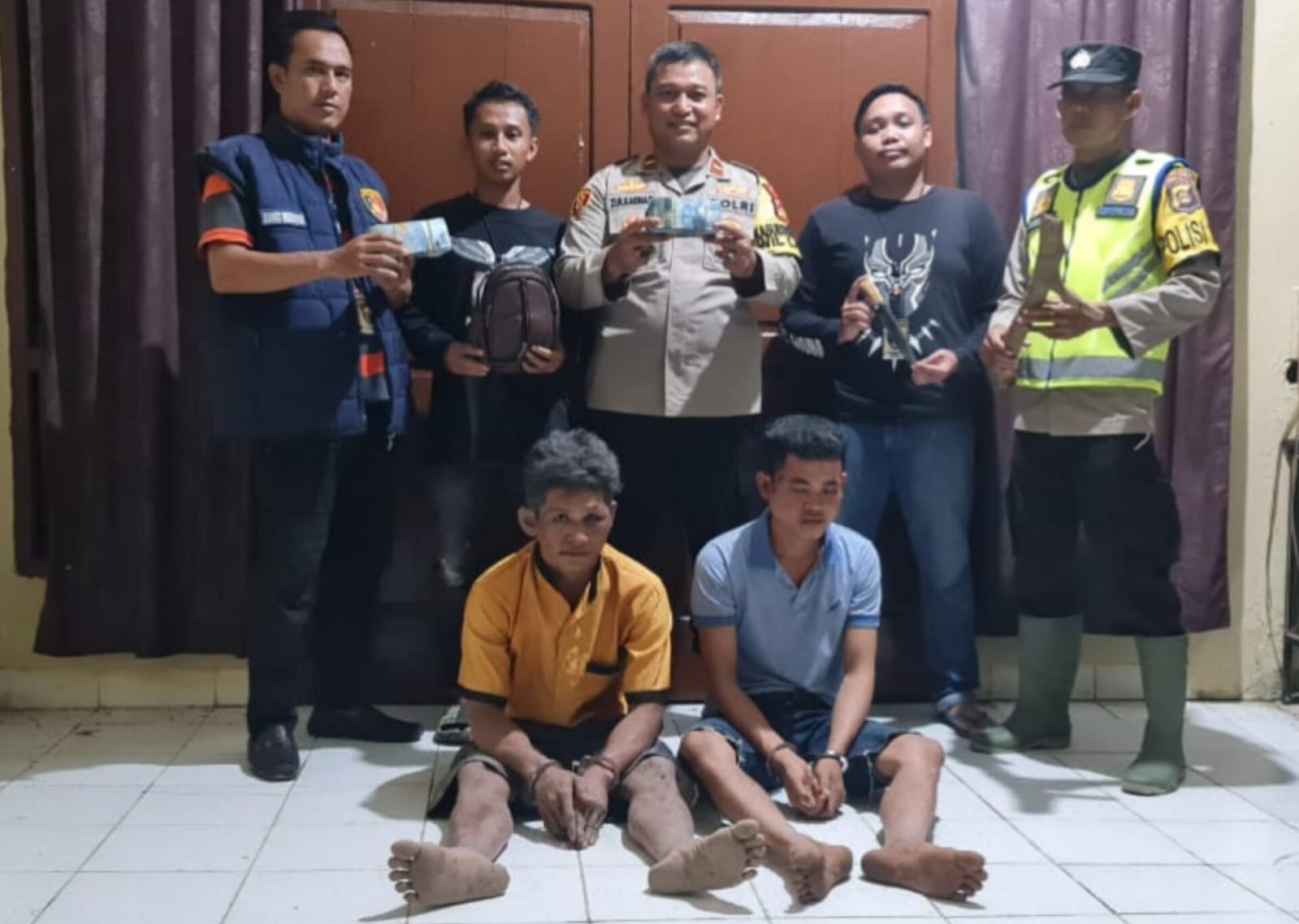 PERAMPOK : 2 Pelaku perampok tauke sawit berhasil ditangkap Tim Elang Kelabu Polsek Lalan. (foto ist/dok polsek Lalan/tommykurniawan/sumateraekspres.id--