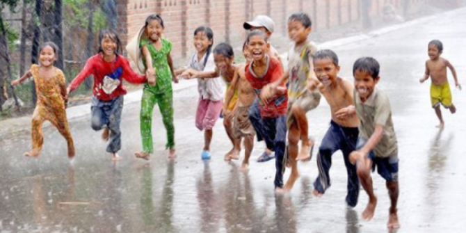 Bermain hujan merupakan aktivitas yang paling menyenangkan bagi si kecil--hlk.vvip.blog
