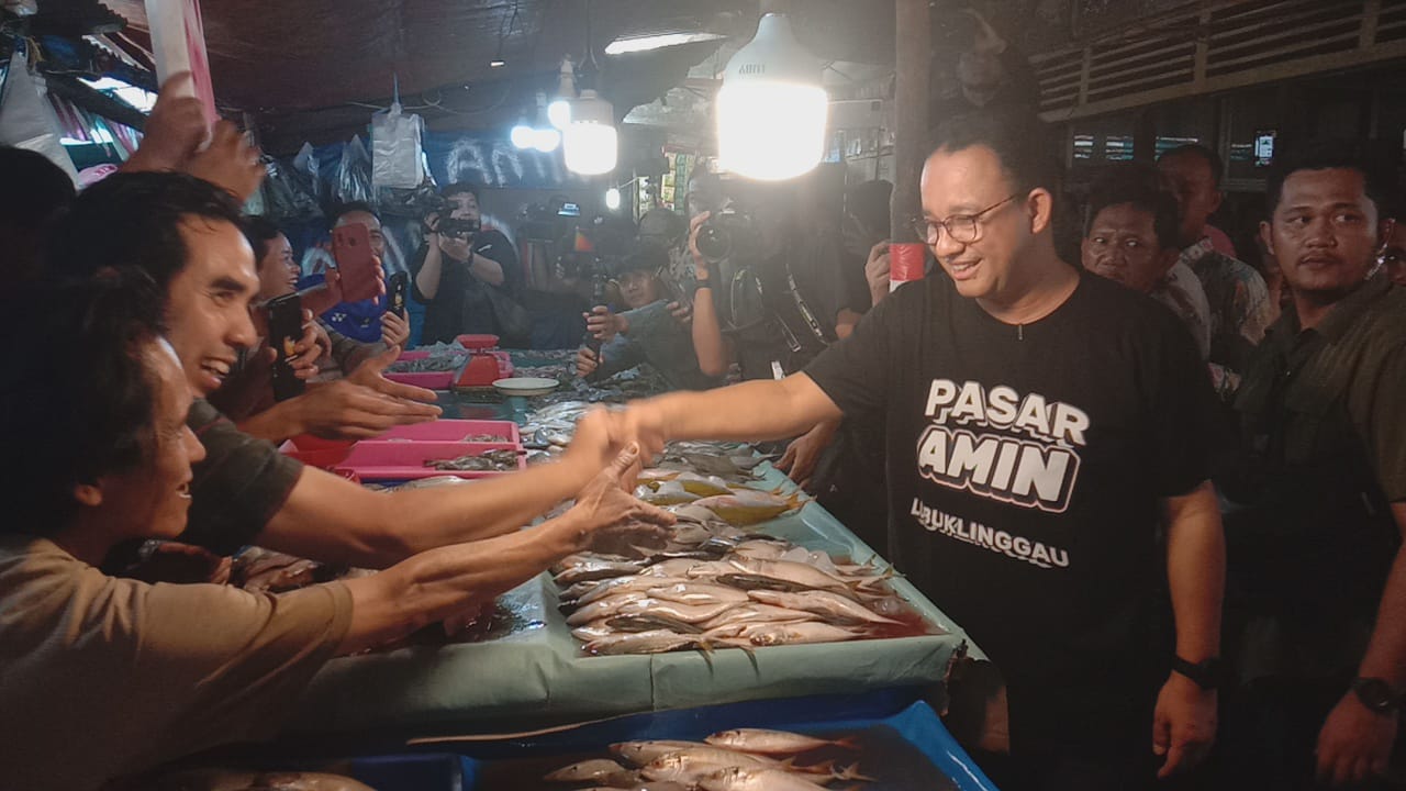 Anies Baswedan yang sehari sebelumnya melaksanakan kampanye di Aceh, Senin pagi 18 Desember 2023 sekira pukul 09.45 WIB mengunjungi Pasar Inpres Kota Lubuklinggau.