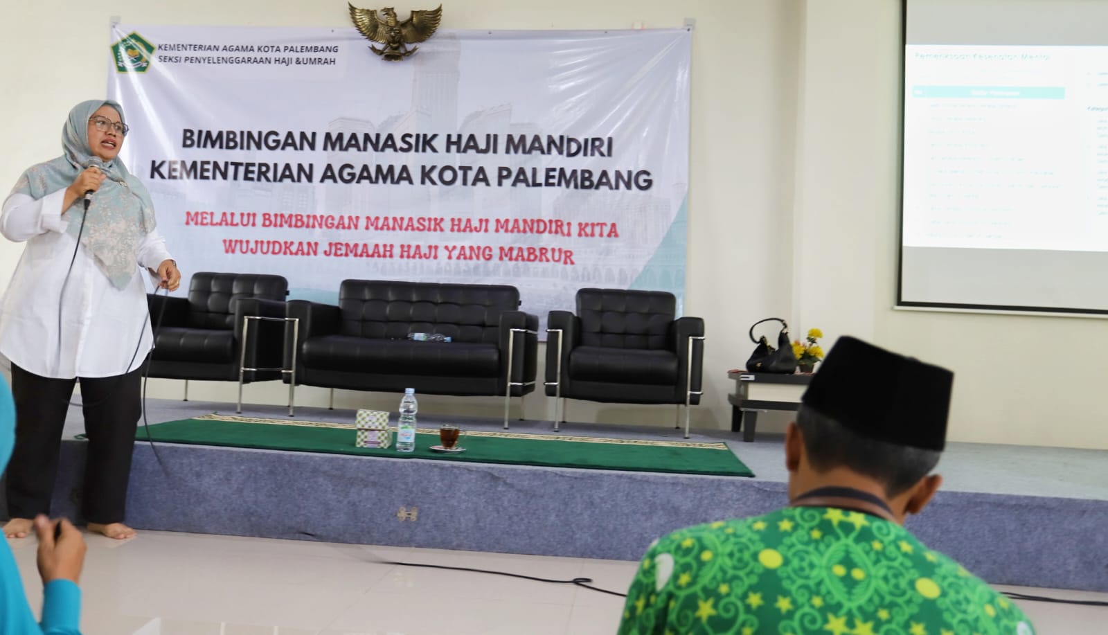 KESEHATAN MENTAL : Salah satu pemeriksaan yang akan di lakukan Tim Penyelenggara Kesehatan haji terhadap CJH 2024 adalah screening kesehatan mental. Tampak Hj Yusmainar, Tim Penyelenggara Kesehatan Haji Kota Palembang ketika memberikan penjelasan dihadapa--