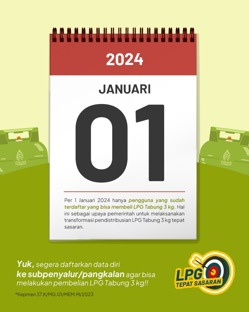 Pemerintah telah memberlakukan kebijakan bahwa hanya pengguna yang terdata yang dapat membeli tabung Elpiji 3 Kg.