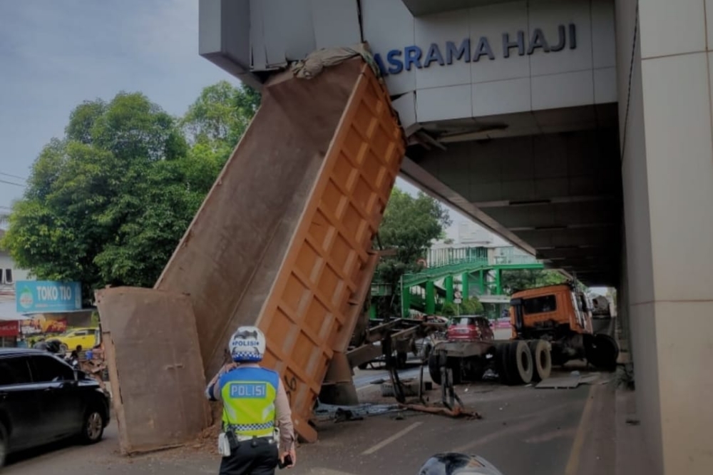 Dump Truk Hantam LRT Asrama Haji, Arus Lalu Lintas Macet, ini Penampakannya!