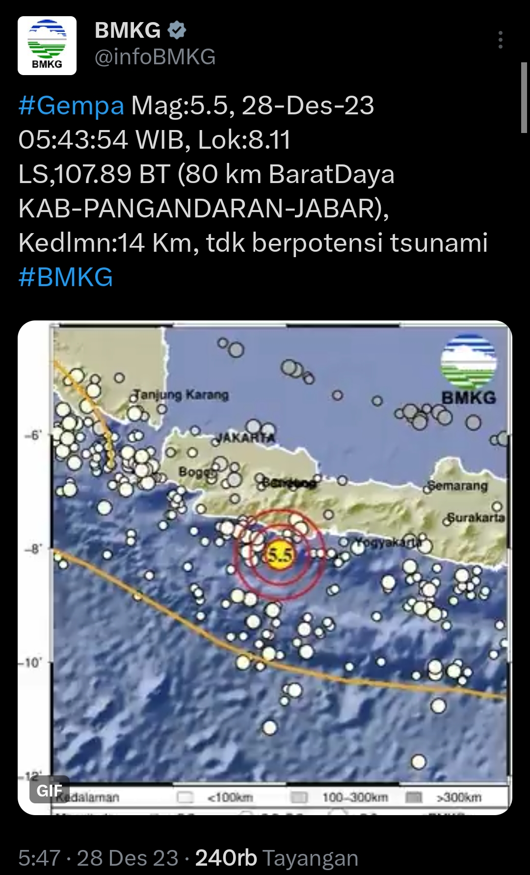 Info BMKG Gempa Pangandaran Jawa Barat 5.5 Magnitudo--twitter@InfoBMKG