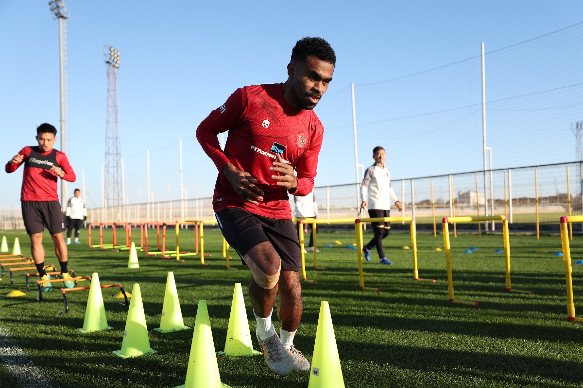 pemain timnas indonesia serius berlatih siapkan diri di turki.-pssi-