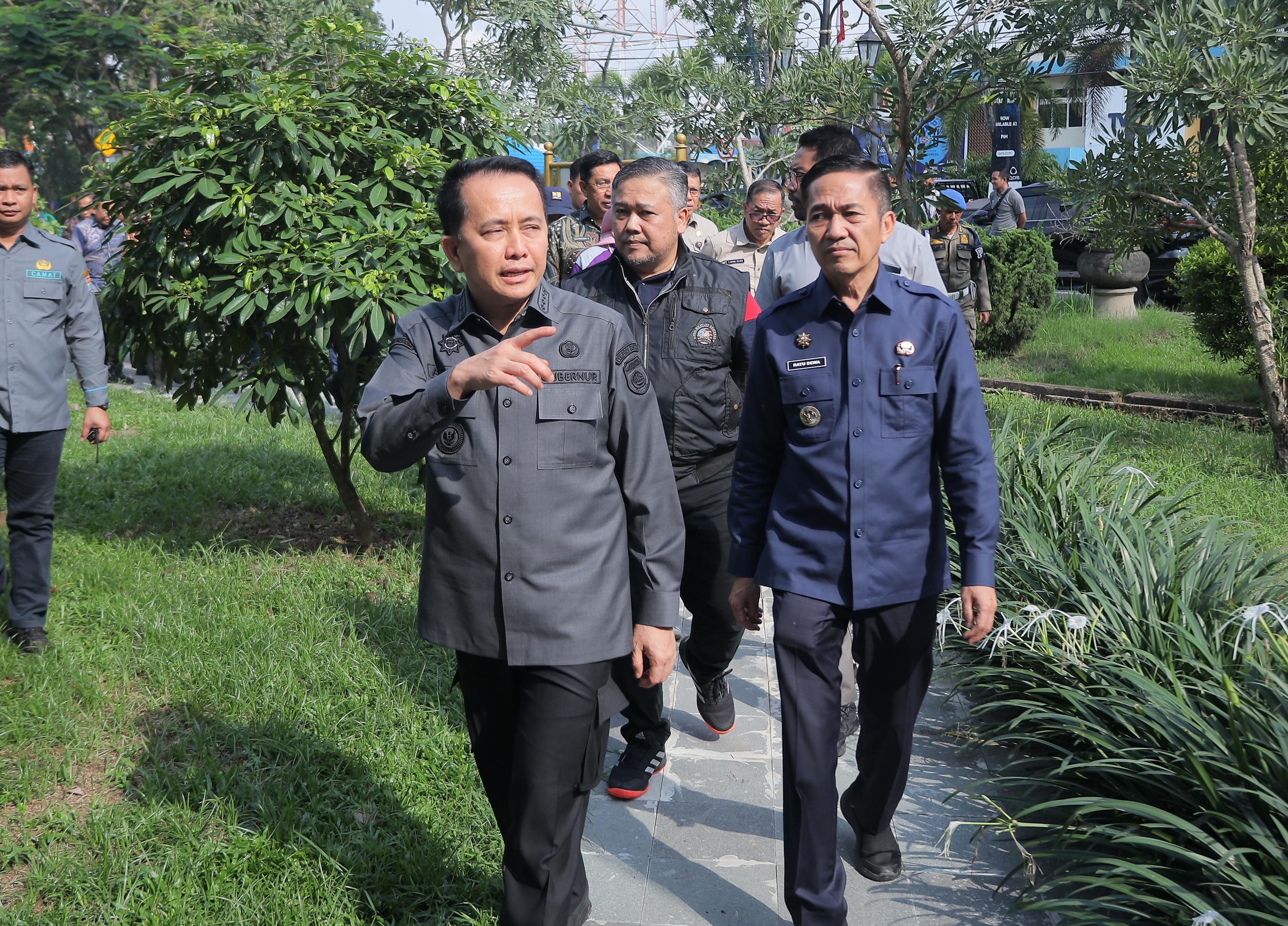 TAK ENAK DIPANDANG : 100 lebih taman kota di Kota Palembang kondisinya tak enak di pandang. Pernyataan itu diungkapkan Pj Wali Kota Palembang Drs H Ratu Dewa MSi usai mendampingi Pj Gubernur Sumsel Agus Fathoni meninjau sejumlah taman dalam Kota Palembang--