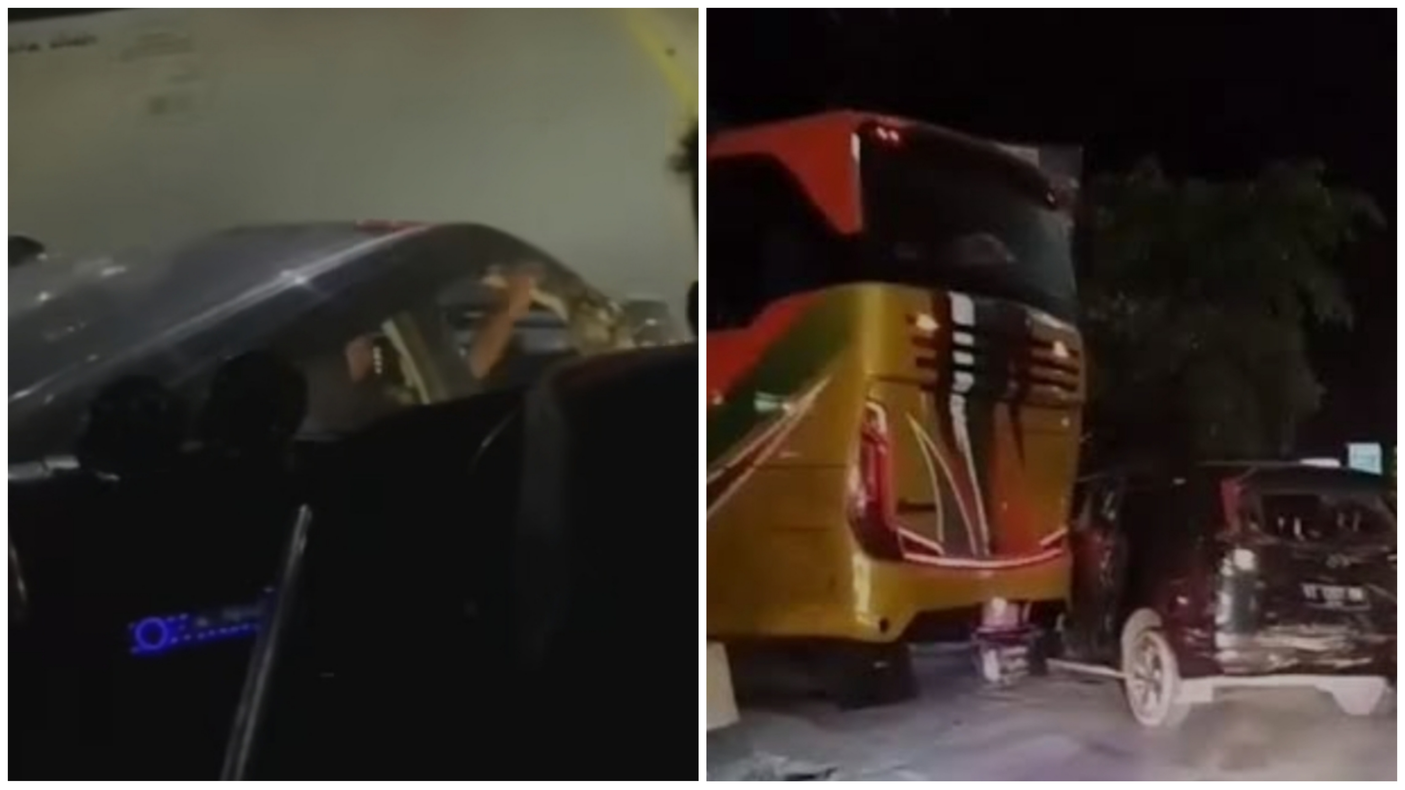 Dalam rekaman berdurasi 30 detik, terlihat bus menabrak mobil berwarna hitam, menyebabkan kerusakan pada kendaraan tersebut.