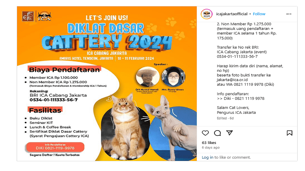 Diklat Dasar Cattery 2024--Instagram/icajakartaofficial