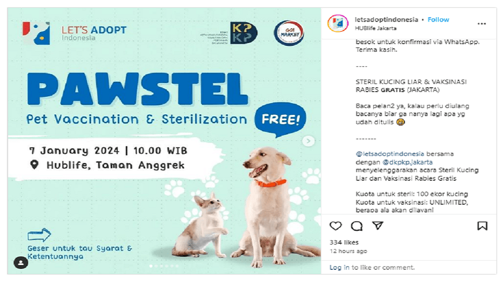 Sterilisasi dan vaksinasi kucing gratis--instagram/letsadoptindonesia