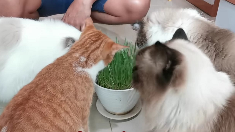rumput dijadikan cemilan untuk mengatasi berbagai macam masalah kesehatan untuk kucing.