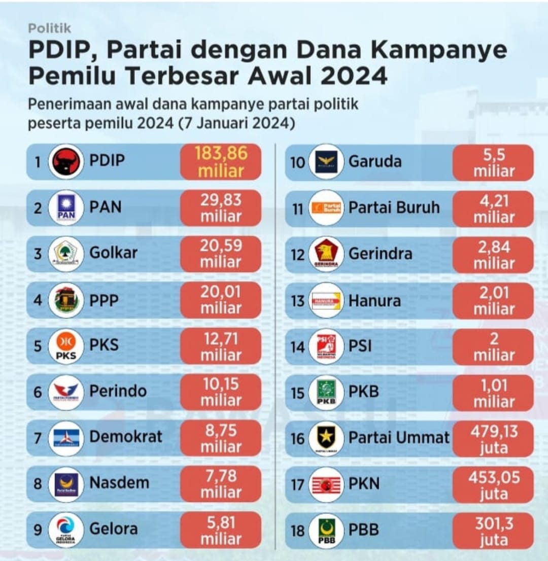 PDIP Partai Dana Kampanye Terbesar di Pemilu 2024--