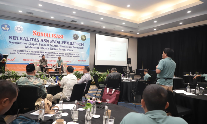 Anggota Bawaslu Puadi saat hadiri acara sosialisasi netralitas ASN pada Pemilu 2024 di Jakarta.-bawaslu-
