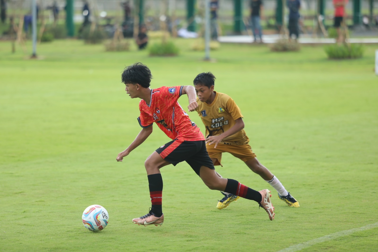 aksi pemain dalam pertandingan di piala soeratin u-13 di bekasi. -pssi-