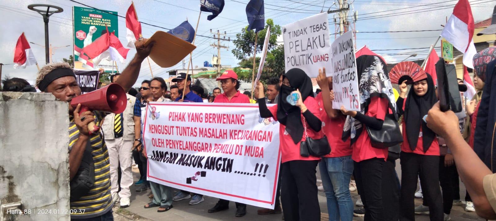 Koordinator Aksi, Sartoto Waliun mengatakan, mereka menyampaikan sejumlah tuntutan kepada Bawaslu Muba.
