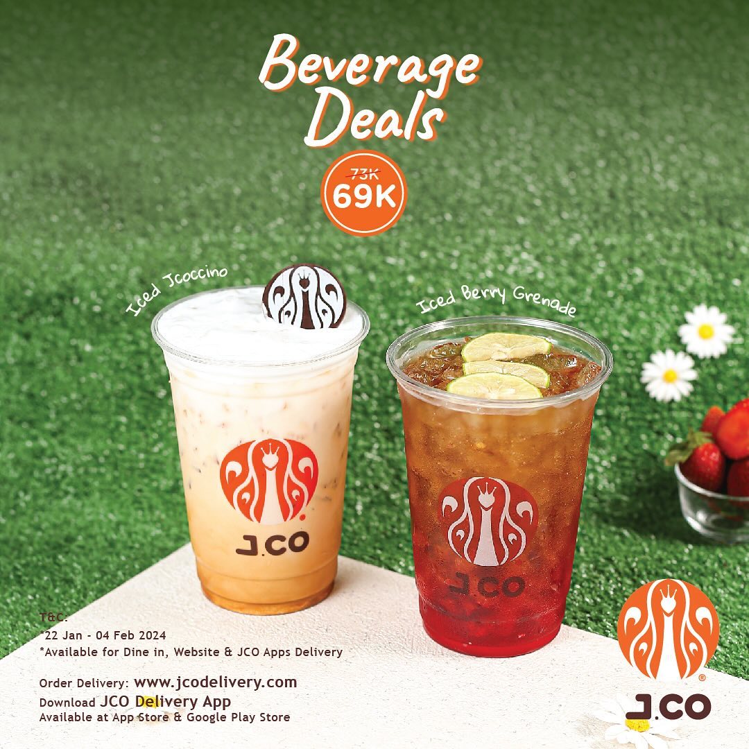 Dengan promo ini, Kamu bisa menikmati dua minuman lezat dari J.CO dengan harga spesial hanya Rp 69 Ribu.