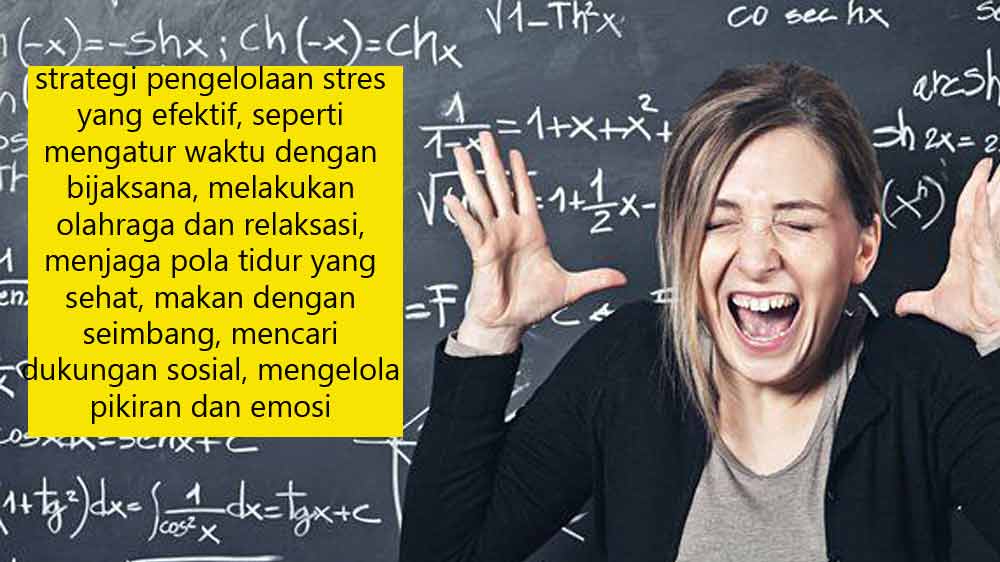 Selanjutnya, kita dapat mengembangkan strategi pengelolaan stres yang efektif, seperti mengatur waktu dengan bijaksana, melakukan olahraga dan relaksasi, menjaga pola tidur yang sehat, makan dengan seimbang, mencari dukungan sosial,