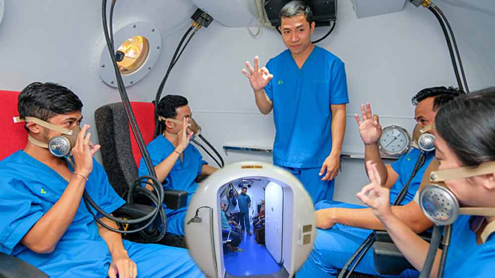 Tidak hanya vaksinasi, BKKP juga menawarkan layanan Terapi Oksigen Hiperbarik yang merupakan terapi dengan menghirup oksigen murni di dalam ruang udara bertekanan tinggi.