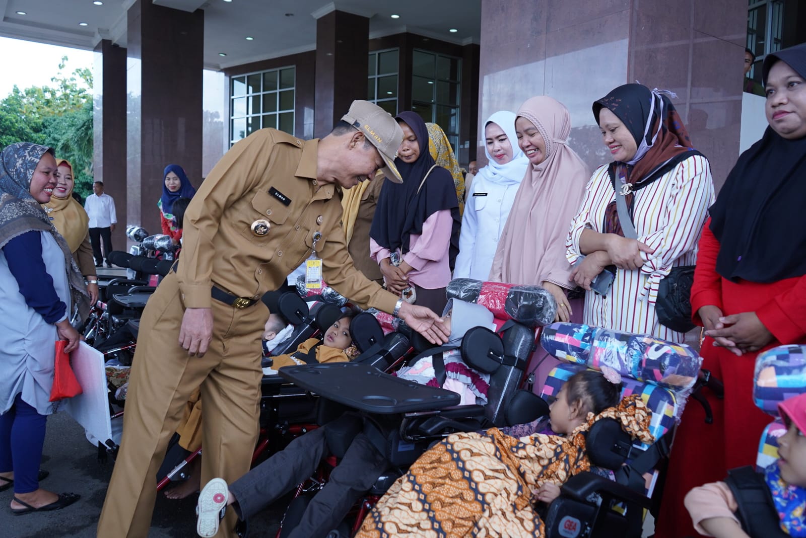 Adapun bantuan yang dibagikan kepada penyandang disabilitas itu berupa 12 orang penerima kursi roda adaptif, 1 orang penerima kursi roda sport.