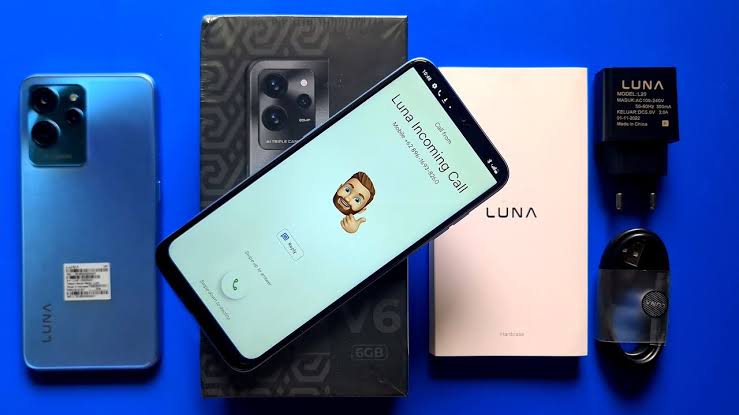 Luna V6 memiliki desain yang rapi dan elegan, dengan penutup belakang flat yang berwarna hitam atau biru.