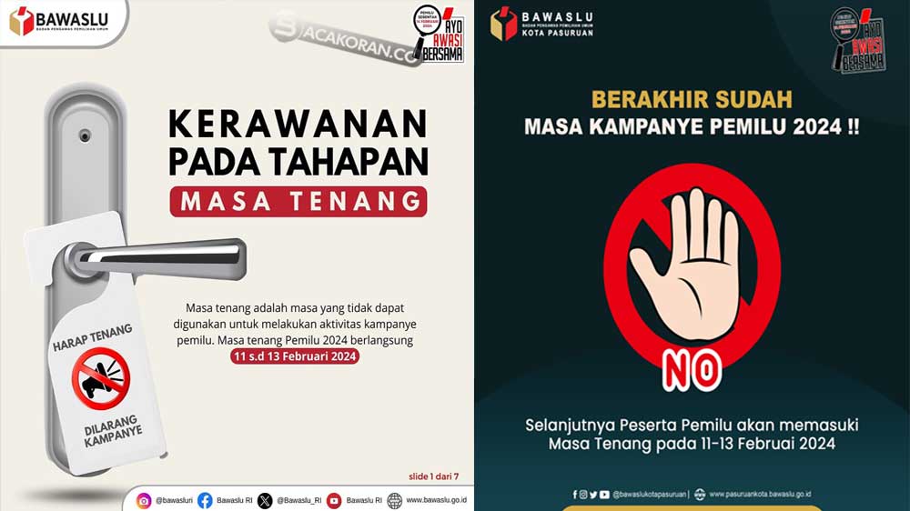 BACAKORAN.CO - Hari ini, 11 Februari 2024, merupakan awal dari masa tenang dalam Pemilu 2024. Setelah berakhirnya waktu kampanye pada 10 Februari 2024, seluruh peserta pemilu dan tim kampanye dilarang melakukan segala aktivitas kampanye terkait pemilu selama tiga hari sebelum pemungutan suara yang akan dilaksanakan pada 14 Februari 2024.